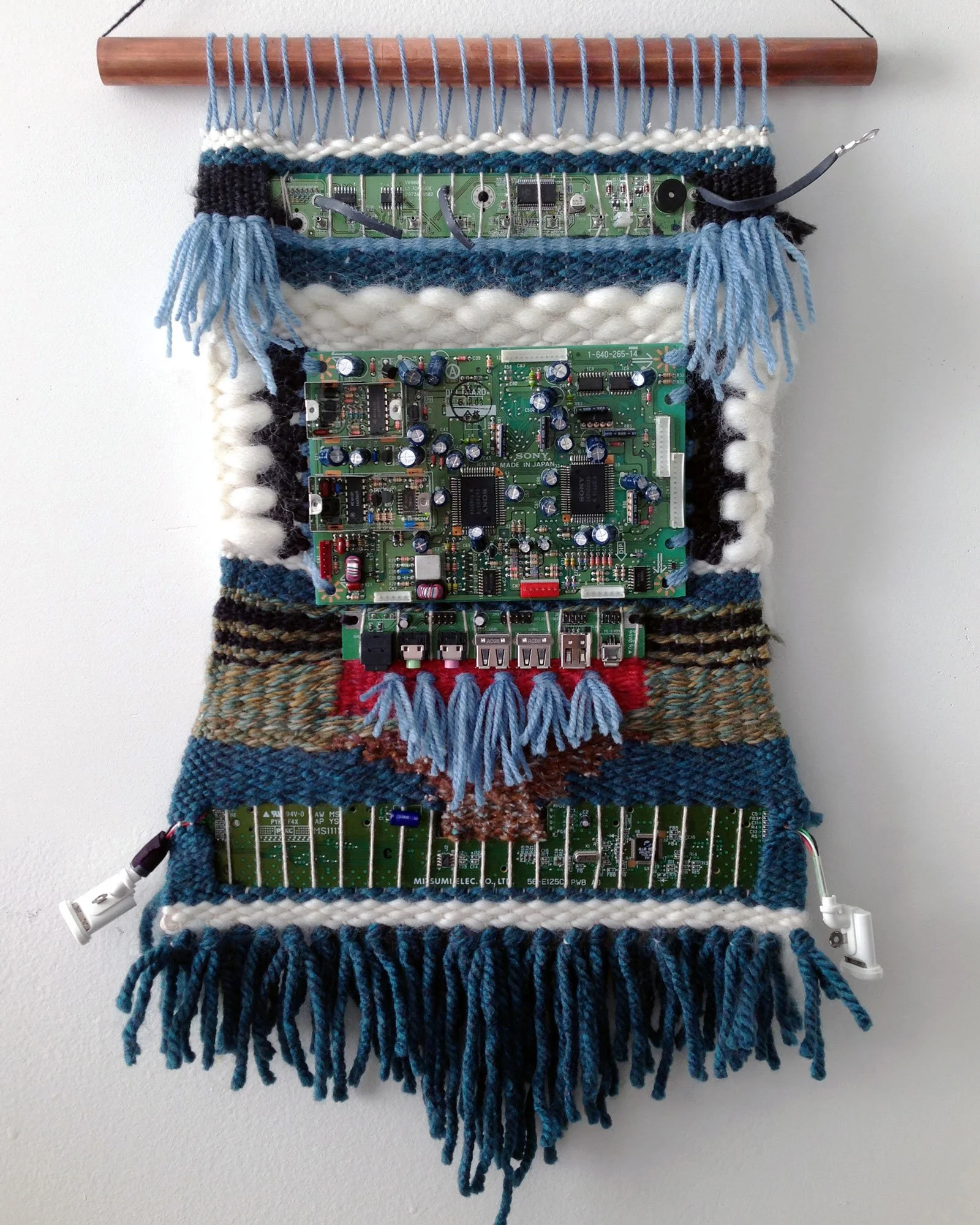My first experiment focused on weaving as an ancestor of computing. I found broken and discarded circuit boards, and chose to preserve them in the form of a tapestries. I hoped to draw attention to the design and craftsmanship of the boards, which feature many components that were soldered by hand.