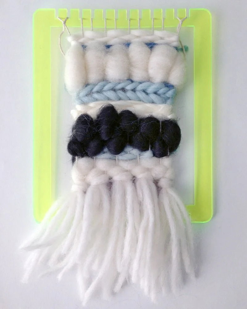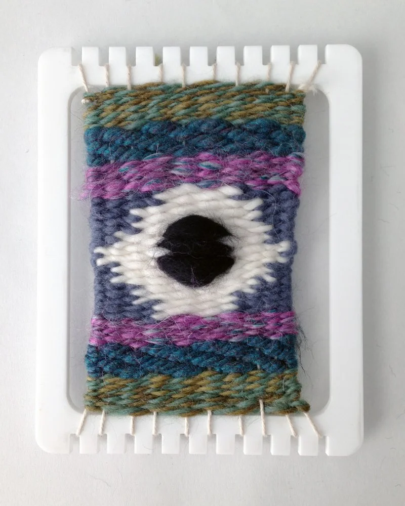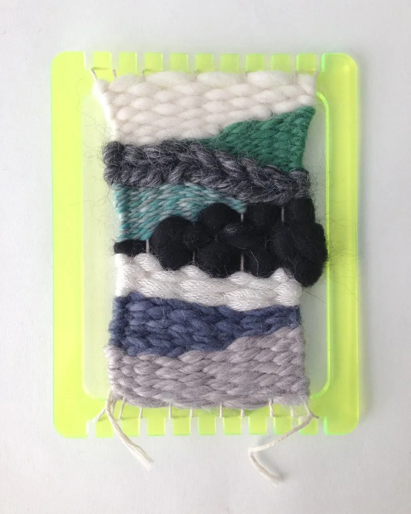 During my research I was challenged to come up with a daily practice. I chose to weave a tapestry every day. In order to make that feasible, I designed my own mini looms, which I made from acrylic and wood using a laser cutter.
