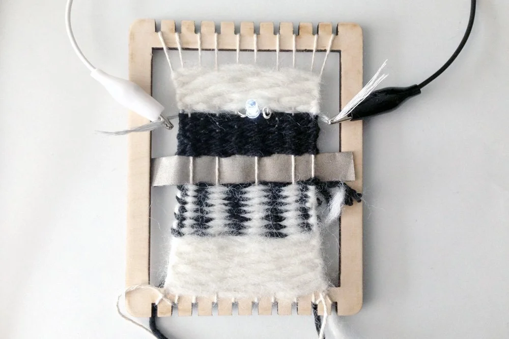 I also experimented by weaving with conductive materials. Learning about the woven structure made it easier to envision how circuitry could be integrated in order to produce e-textiles.