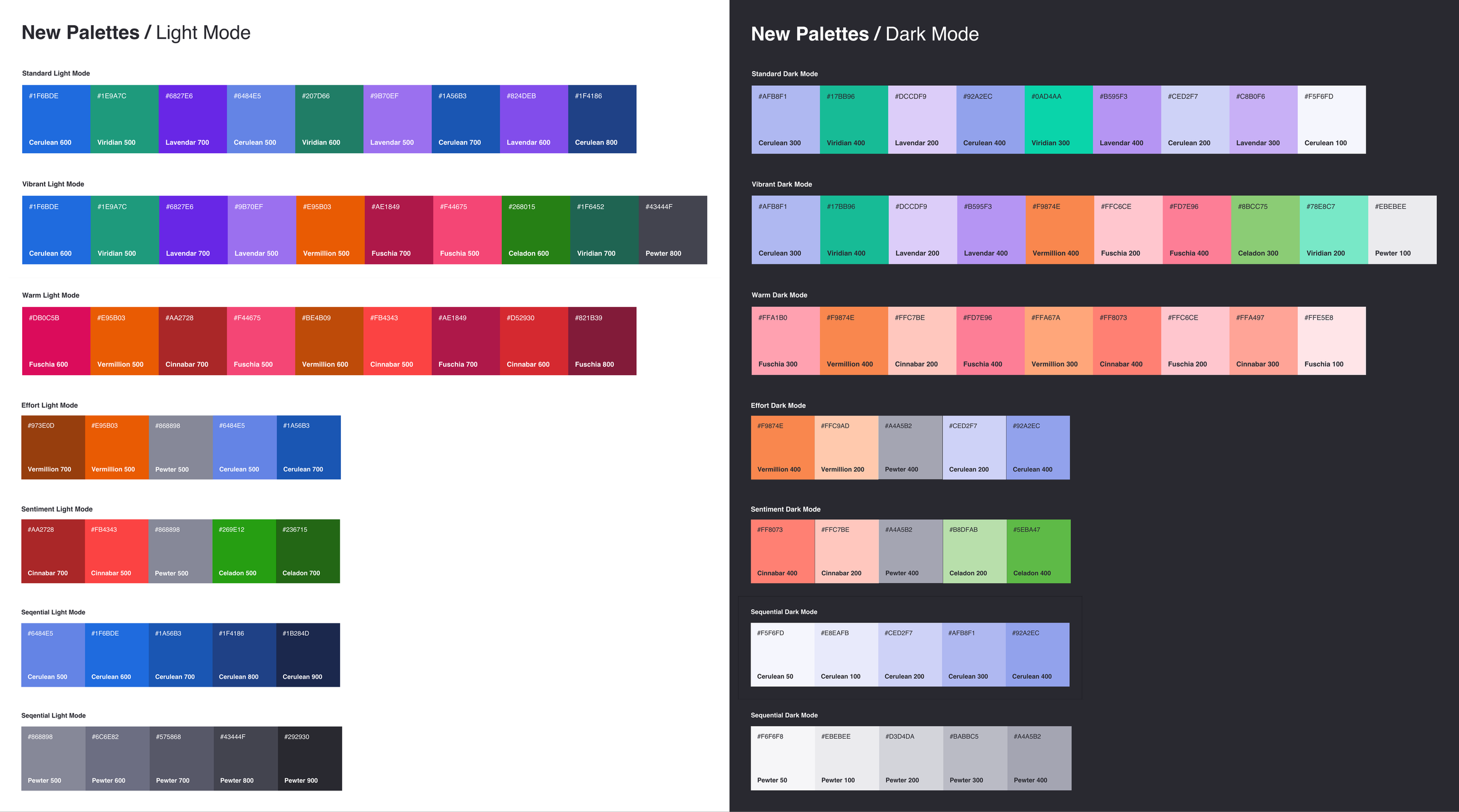 My team and I also audited the existing palettes against user needs. Each palette needed to support both visual clarity and emotional tone. We identified key use cases and grouped them into our core palette types.