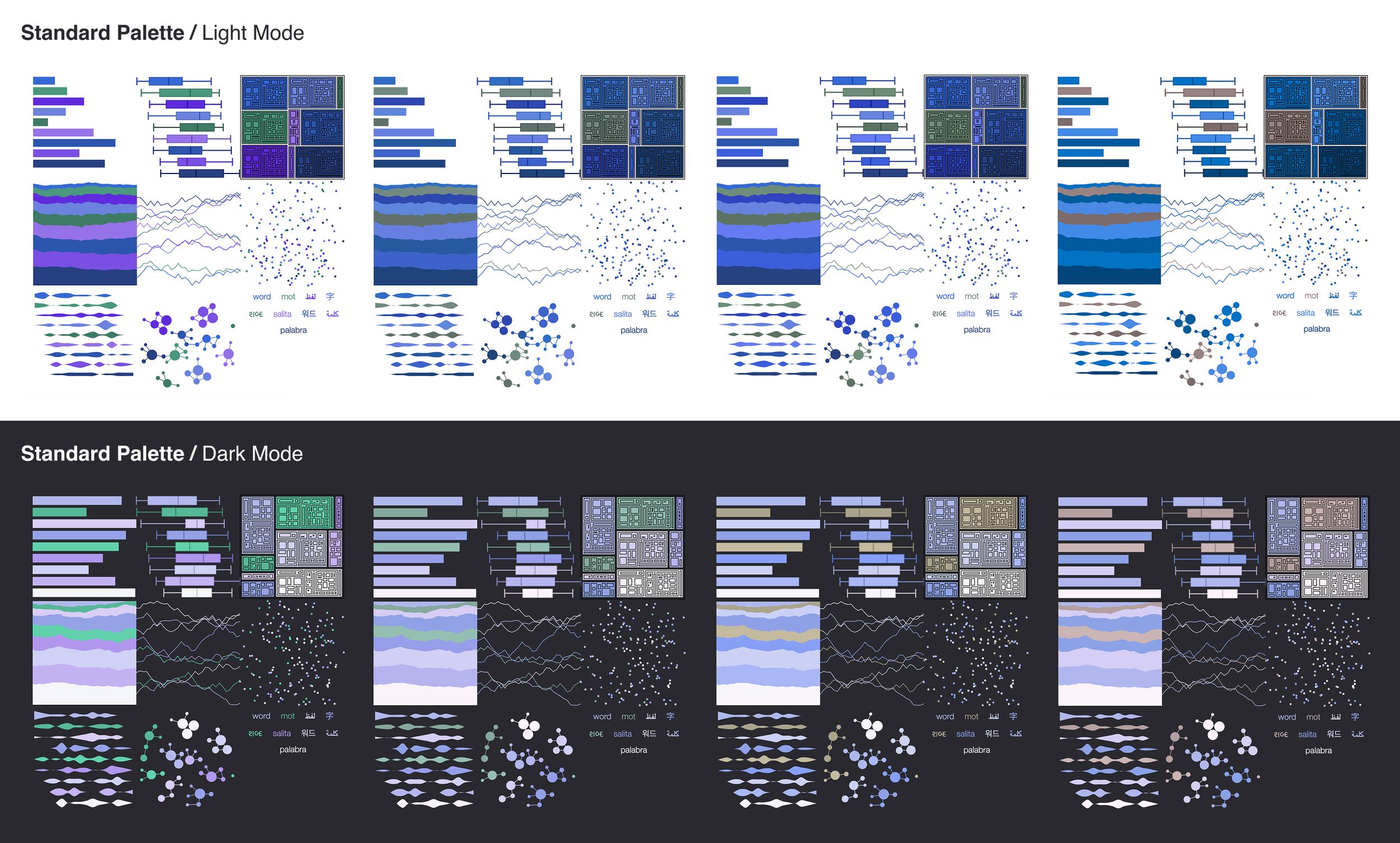 I also built a system for fallback and repetition logic, ensuring that when data visualizations included more categories than colors, the palette would repeat with minimal confusion—by maintaining color order and legibility.