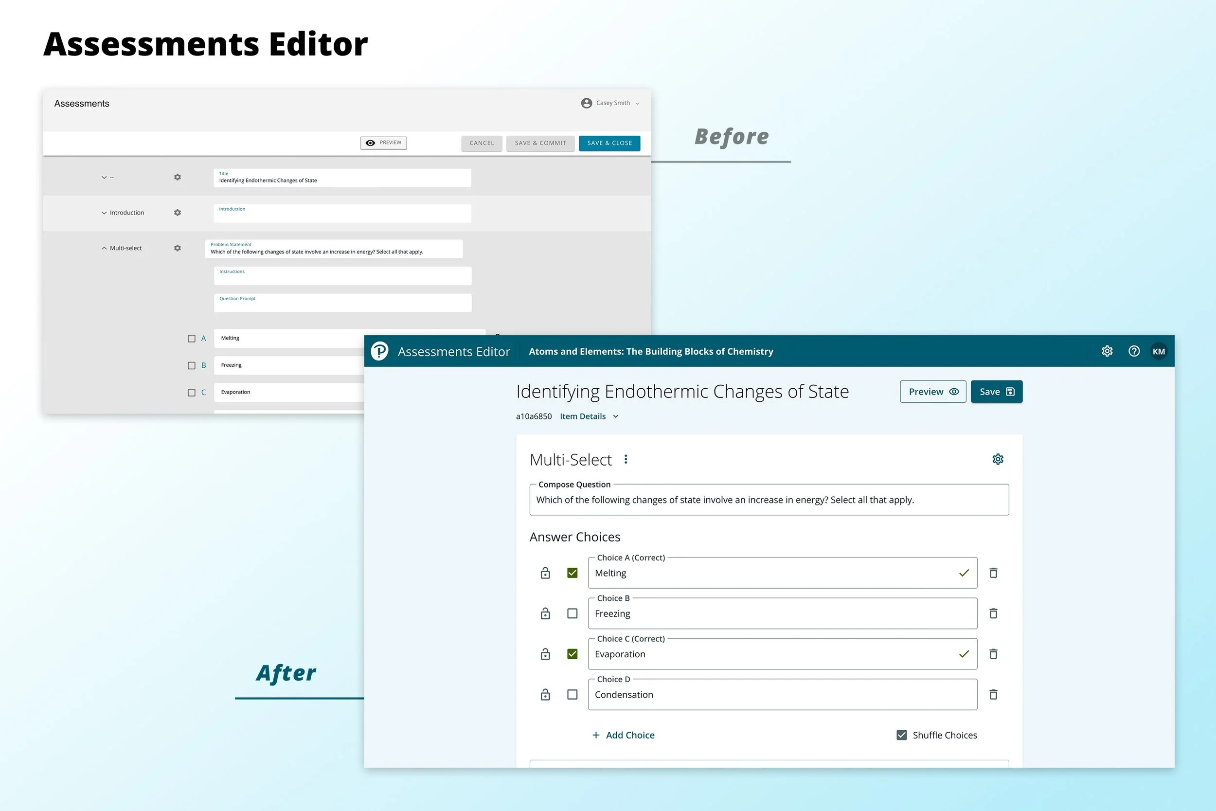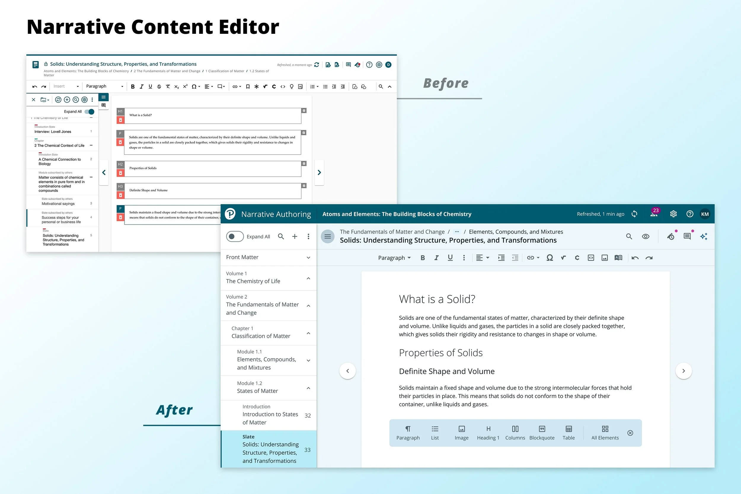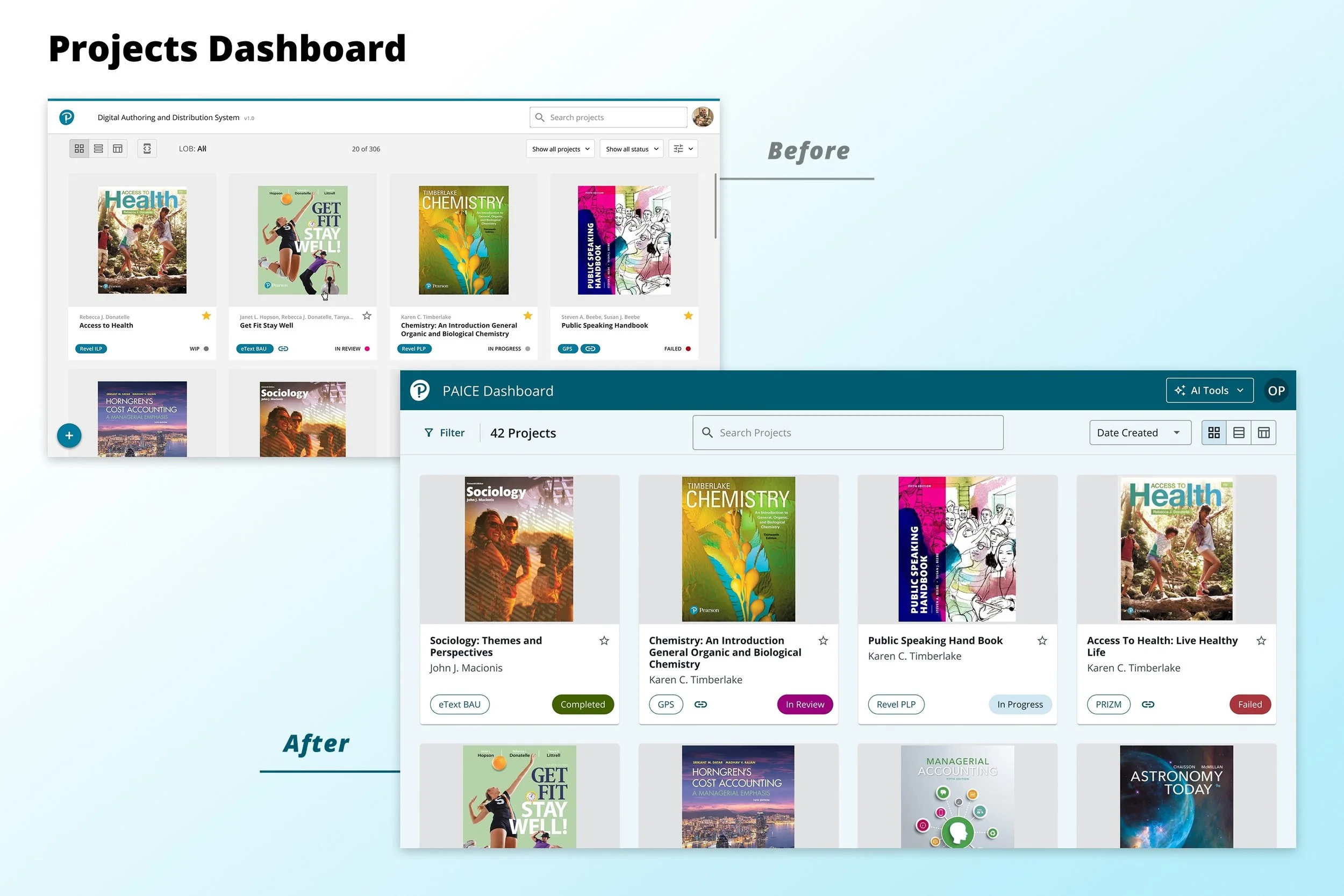 The PAICE suite was initially built by siloed teams of managers and developers with little to no design input. This resulted in applications with inconsistent visuals, conflicting design patterns, and significant accessibility issues. There was also a notable divide between authored content and rendered output.